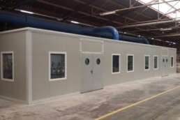 Solucions Tècniques Castelló ofrece la realización de casetas insonorizadas a medida. Fabricadas con panel aislante blanco, angulares para remate de las esquinas y cumbreras para remate superior.